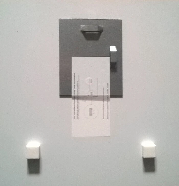 - Spiegelglasaufhänger (inkl. Sicherungsetikett)
