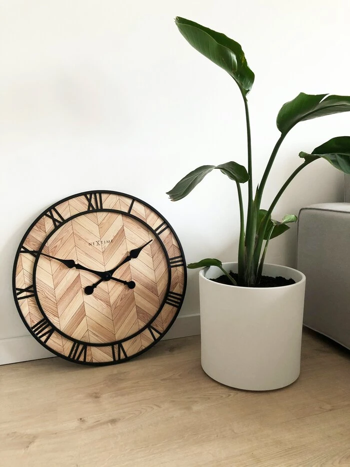 - Ziffernblatt: Holz,hell mit schwarzen römischen Zahlen