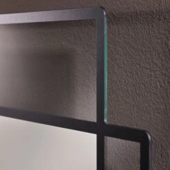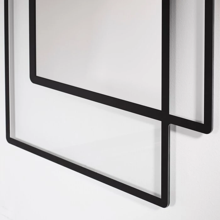 - Rahmenloser Spiegel mit transparenten Teilen und schwarzem Aufdruck